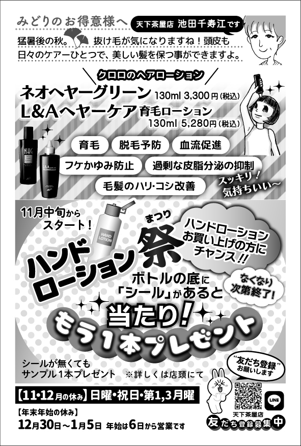 お肌も乾燥しますが、頭皮や手肌のケアも大切にして下さいね✨🌹✨
